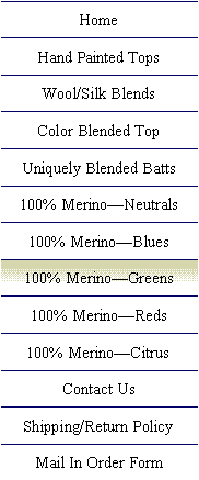 We currently offer a combination of products for the fiber lover. Ashland Bay 100% Merino Wool, professionally dyed for perfect colors every time are offered here! All Fibers are sold per ounce—please keep that in mind while shopping. Please remember that all monitors show color a bit differently, so if you have any concerns about the colors shown here, please feel free to contact us for additional photos, or a sample. If you wish to add an item to your cart, just click on the more link on each items description. Then, click add to cart. Its that easy! |