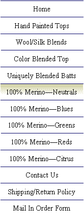 We currently offer a combination of products for the fiber lover. Ashland Bay 100% Merino Wool, professionally dyed for perfect colors every time are offered here! All Fibers are sold per ounce—please keep that in mind while shopping. Please remember that all monitors show color a bit differently, so if you have any concerns about the colors shown here, please feel free to contact us for additional photos, or a sample. If you wish to add an item to your cart, just click on the more link on each items description. Then, click add to cart. Its that easy! |